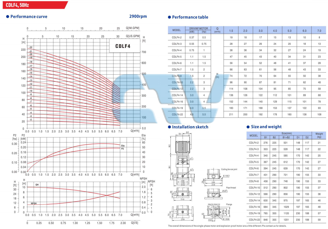 - Phớt bơm: Carbon-Ceramic, Chống ngấm nước bằng vách ngăn dầu ở giữa